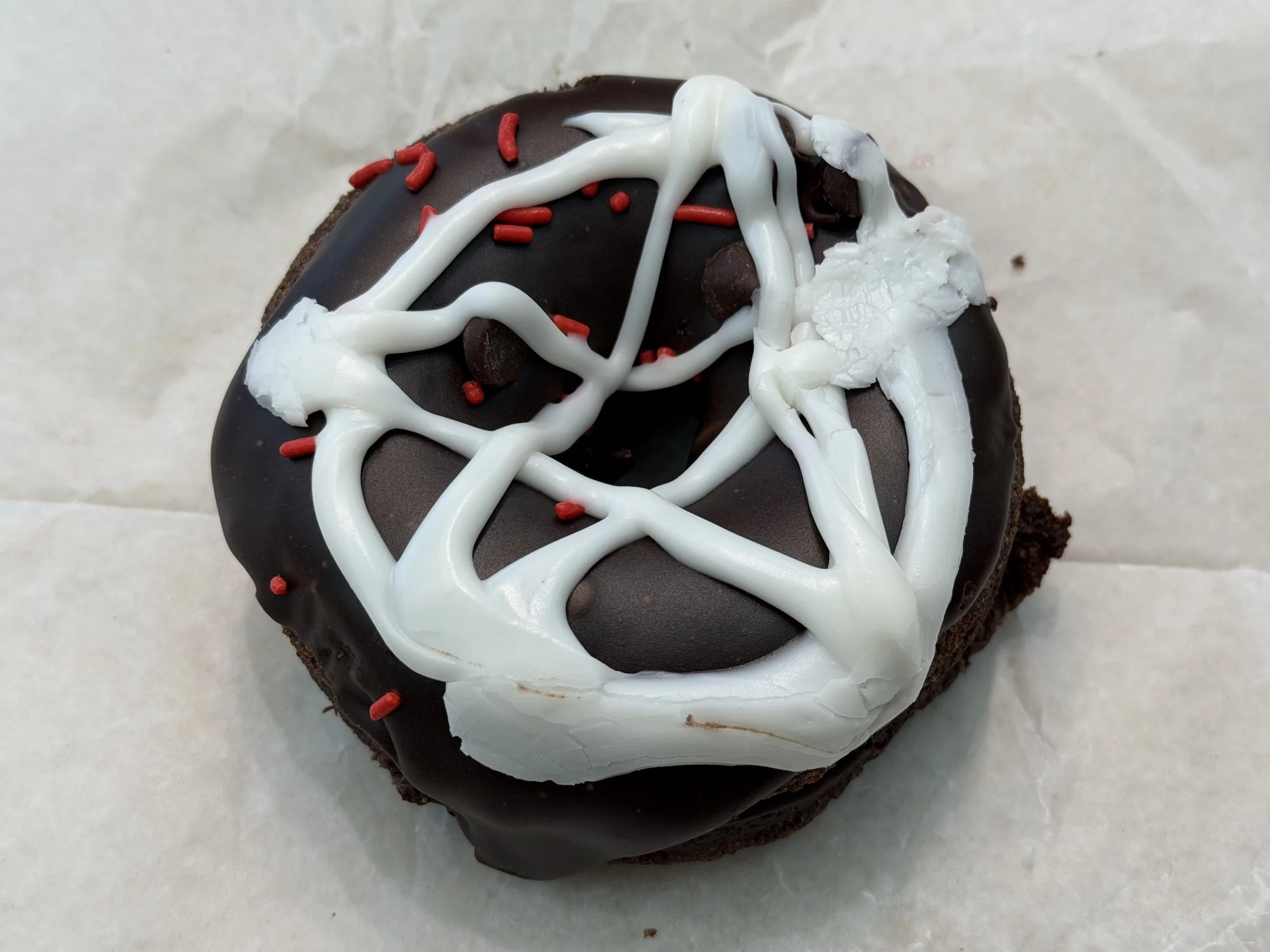 When you’ve got a long layover at DIA—as we did on our last trip through in January—you might as well see what all the hubbub is about by tracking down some of the unique public art that’s spurred on such theories. Be forewarned, however, that the airport’s baggage carousels are a place where gargoyles dwell. With a delayed flight, a damaged suitcase, and some positive flu tests on our return from Denver, we experienced enough bad luck this time that you’d almost think it was a mistake for me to have eaten that pentagram doughnut in DIA. Maybe the airport really is cursed, and every little coincidence is meaningful. Or not.
